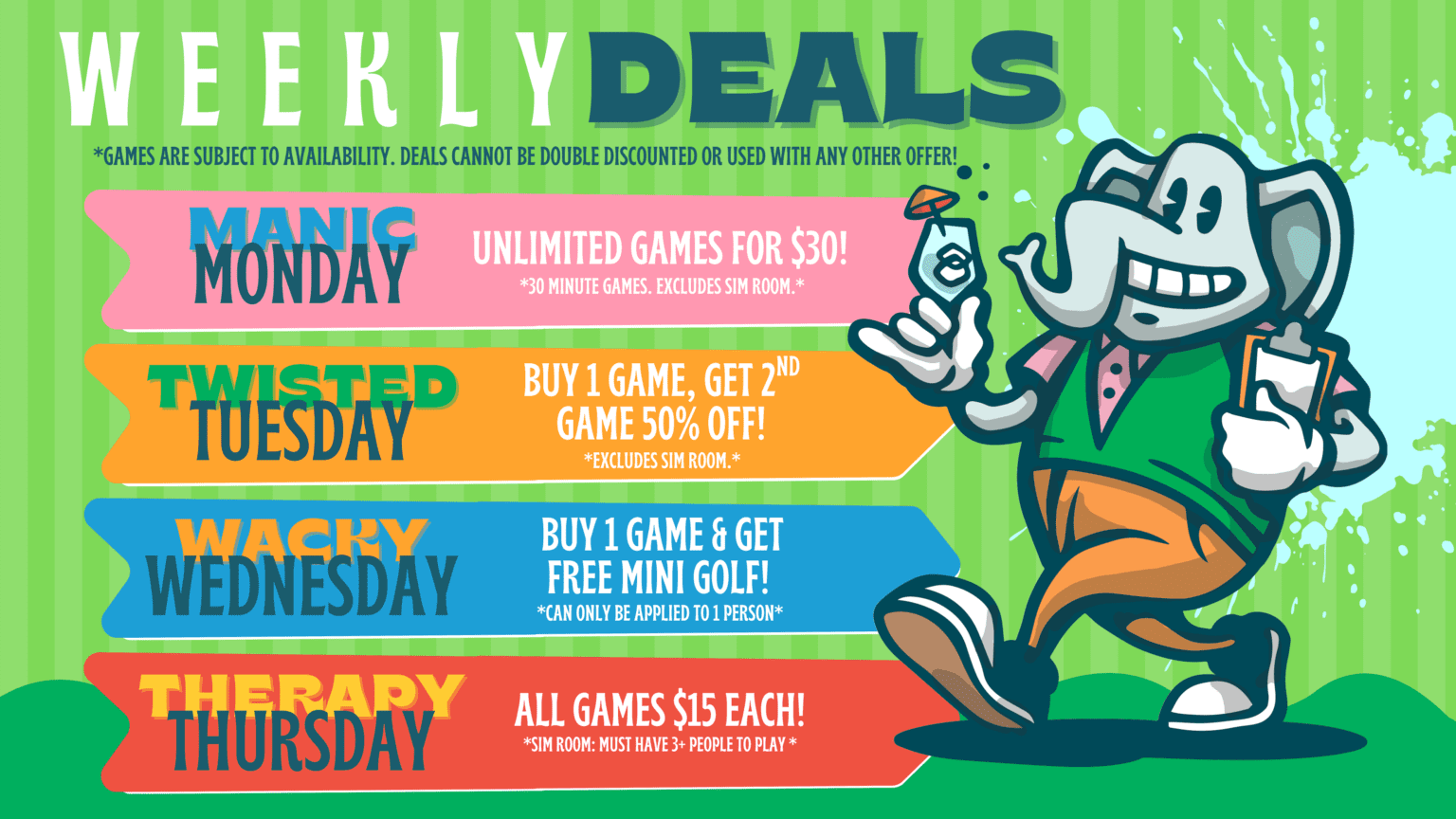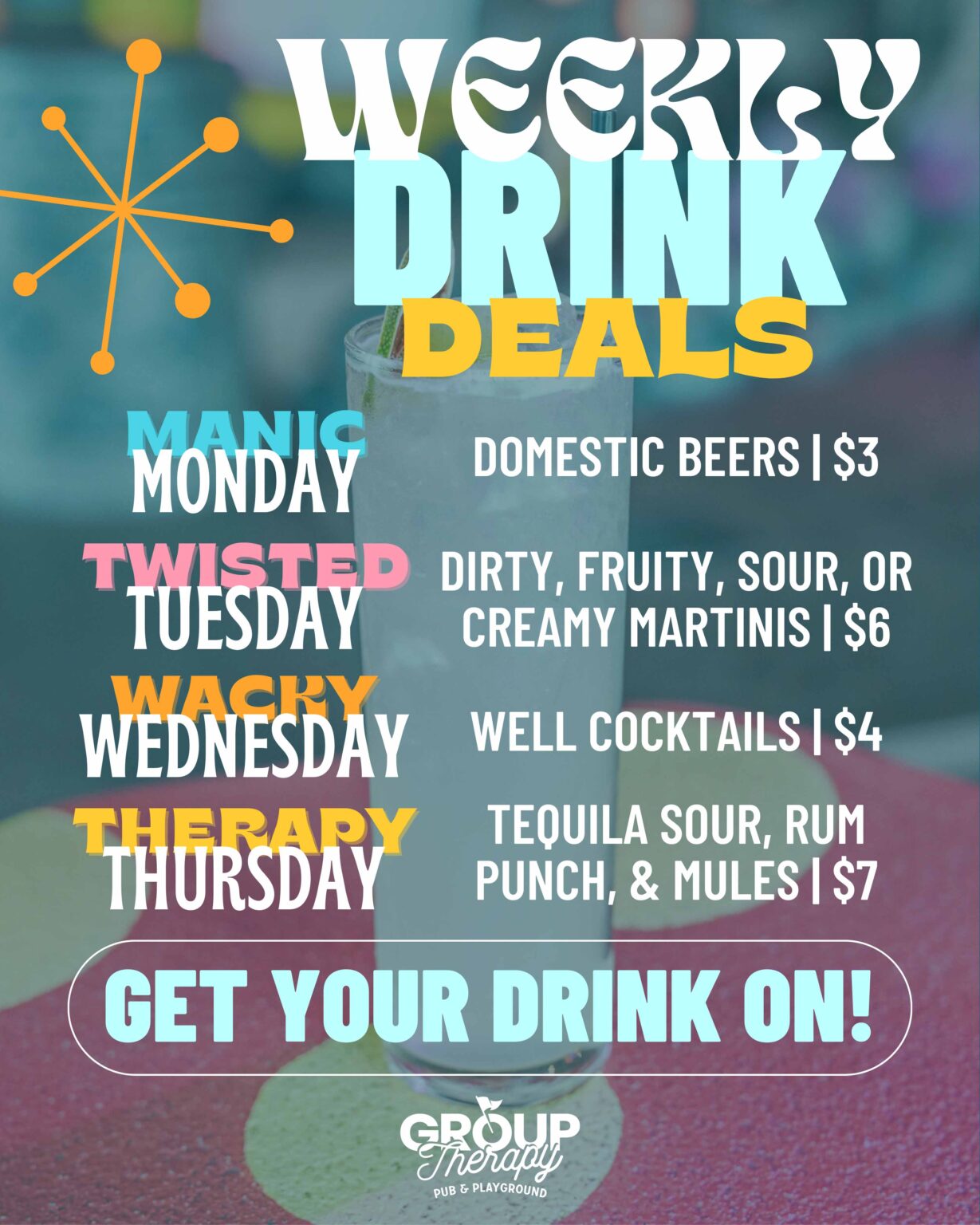 There are a lot of different games at Group Therapy that you can take part in, and they are all priced a bit differently. It’s easiest to visit our GAMES page to review our entire offering. We also offer free weekly events like karaoke and trivia, so follow our Instagram or Facebook page to keep up with everything that’s going on.